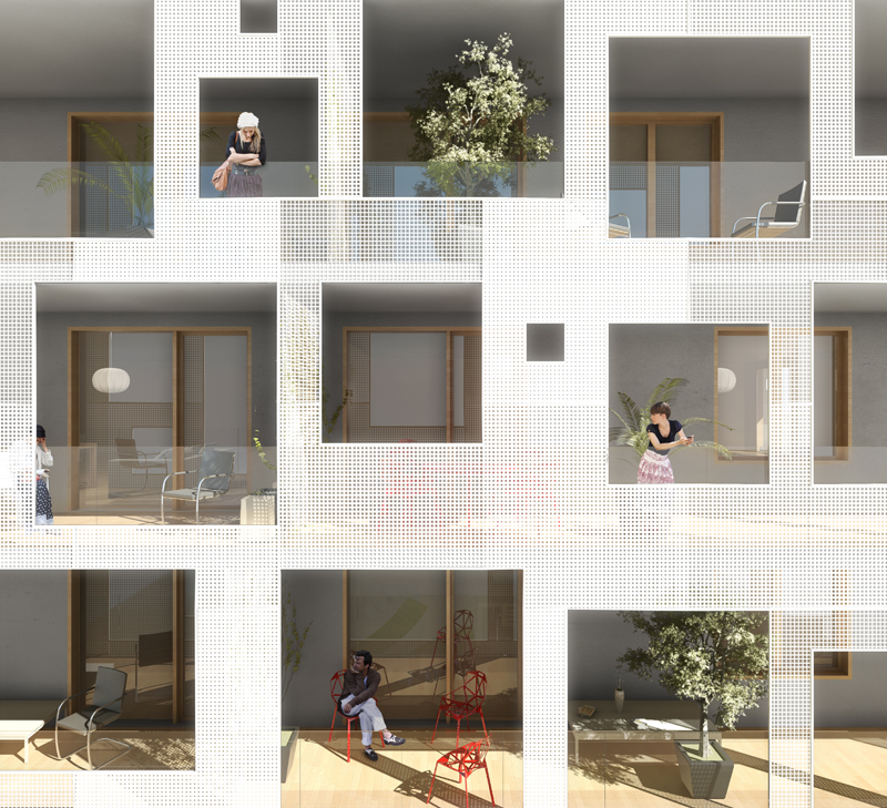 La connessione diventa infine anche un sistema digitale con una App dedicata che organizza l’interazione della comunità dei residenti del condominio e del quartiere e contribuisce a attuare le connessioni reali e immateriali.